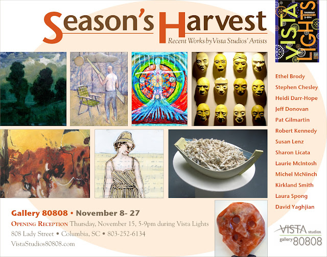 Artists Heidi-Darr Hope, Robert Kennedy, Michel McNinch, and David Yaghjian will also present new work and open their studios at Vista Studios. The exhibition will be from November 8-27th. Gallery hours are weekdays 11 a.m. to 3 p.m. and weekends 1-4 p.m. Please call the Gallery 80808 at 803-252-6134 to confirm hours. The website is: www.VistaStudios80808.com.